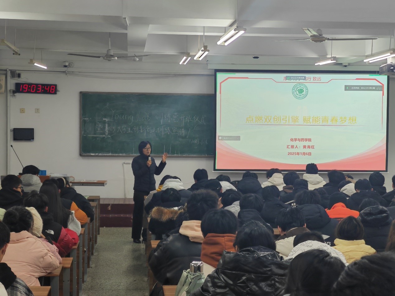 1月6日晚,化学与药学院”Young Lab“双创训练营开班仪式暨2025年大学生创新创业训练计划立项宣讲会在教学楼C311举行,学院创新创业工作联络员黄海红主持会议,采用“线上线下”相结合的方式,城阳校区2023级化工艺、材料、材化、制药、药学、应化6个专业共计210人线下参会,平度校区大一学生线上参会。