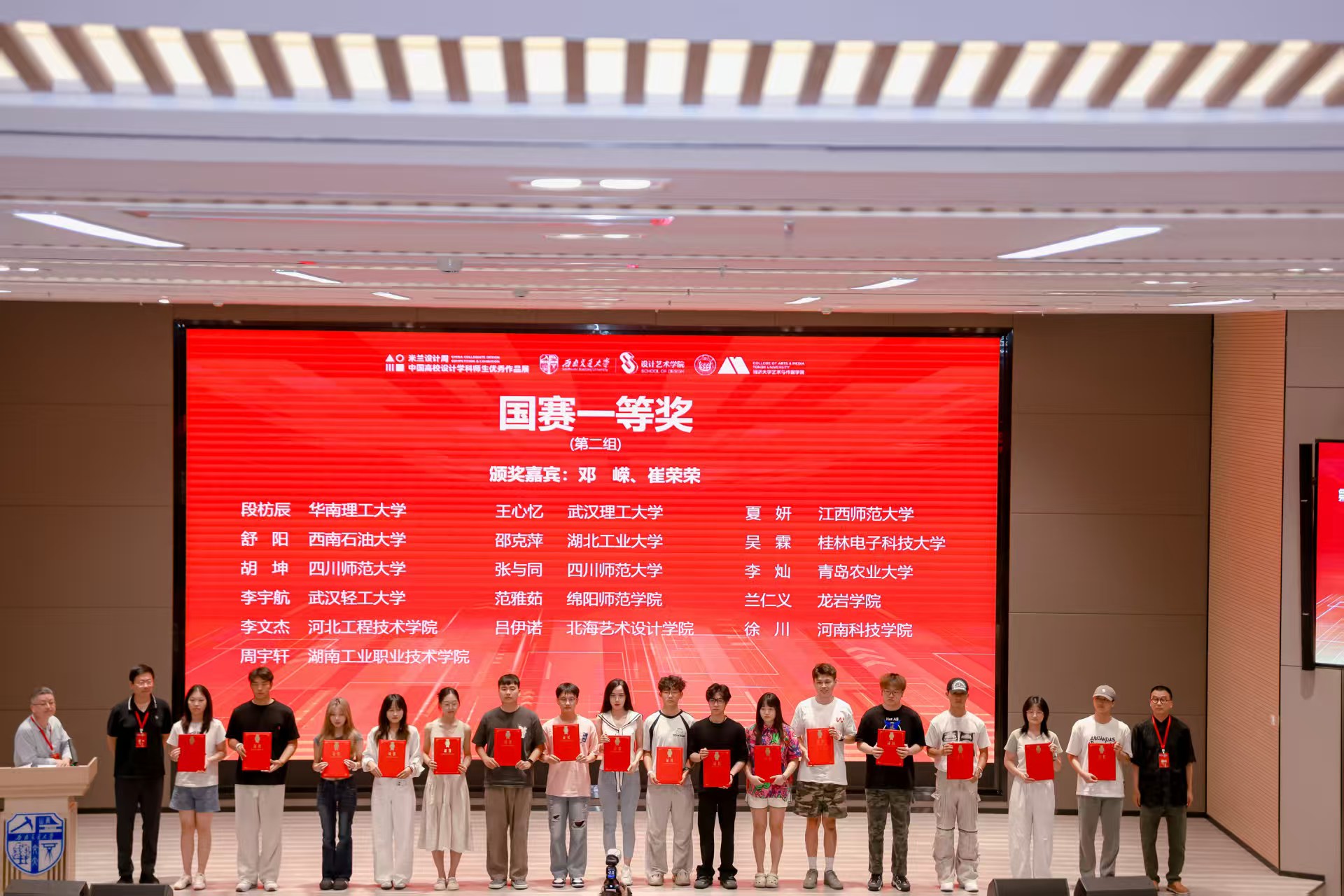 近日,第九届米兰设计周中国高校设计学科师生优秀作品展颁奖典礼暨“人工智能艺术设计教育”教学创新论坛在西南交通大学圆满落幕。我校师生团队凭借深厚的专业素养与突出的创新设计能力,在本届赛事中表现卓越,共获一等奖6项、二等奖1项、三等奖10项。