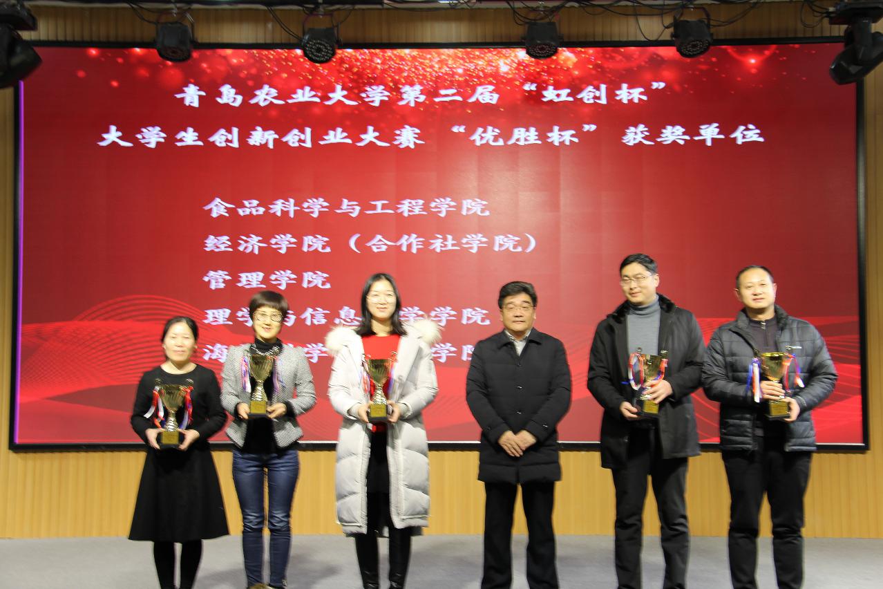 青岛农业大学第二届“虹创杯”大学生创新创业大赛历时8个月,分校赛和省赛两个阶段,我校共179个项目2000余人参加,获得省级奖励16项、校级奖励85项。其中食品科学与工程学院、经济学院(合作社学院)、管理学院、理学与信息科学学院、海洋科学与工程学院荣获“优胜杯”,机电工程学院荣获“虹创杯”。