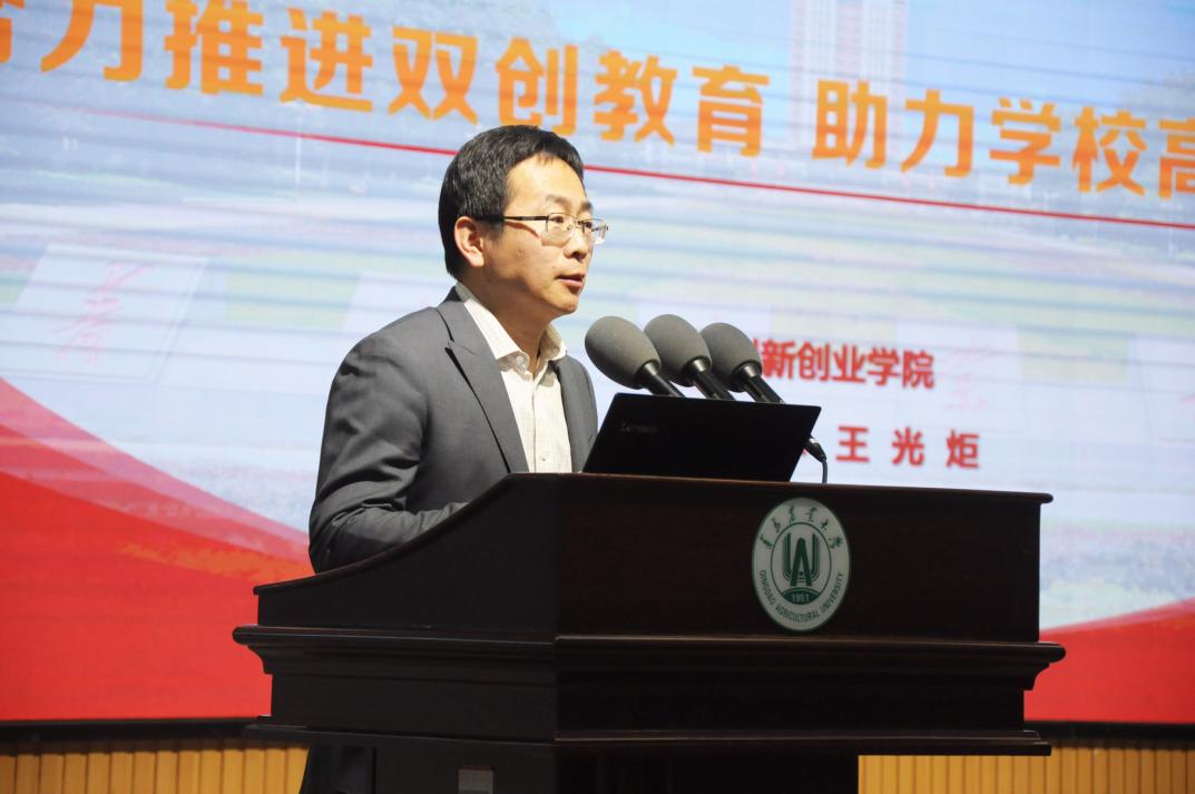 创新创业学院副院长王光炬汇报了2020年我校创新创业工作开展情况,对我校创新创业相关政策进行了详细解读,同时通过大量的数据分析、校际院际间对比指出了目前存在的一些不足以及今后的努力方向。