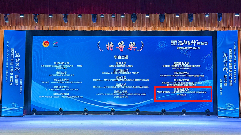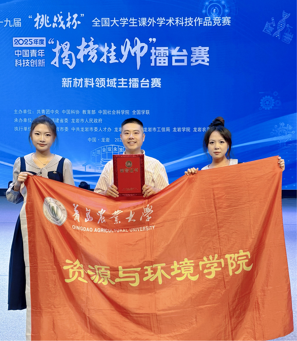 10月10日至12日,第十九届“挑战杯”2025年度中国青年科技创新“揭榜挂帅”擂台赛“新材料领域”主擂台赛在福建省龙岩市举行。由资源与环境学院徐良副教授指导,魏欣如、陶星如等8名学生组成的项目团队,以作品《“玉硅叠贝守岩韵”——贝壳基绿色灌浆材料的研发及其在砂岩防护中的应用》从全国各地的113支团队、近400名青年英才中脱颖而出,入围终审擂台赛,最终斩获全国特等奖,实现了学院在“挑战杯”国赛专项赛道的新突破。